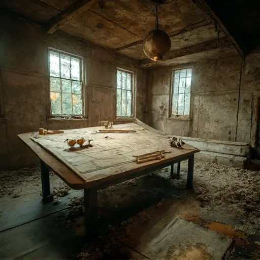 Caligo-Rune House was an architectural anomaly: a sprawling, single-story mansion built of pale, smooth sandstone, characterized by a complex, asymmetrical floor plan that made navigating the interior nearly impossible. Its name suggested a blend of deep fog and mysterious script. The house sat low in a vast, featureless coastal marsh, often shrouded in a thick, disorienting mist. Upon entering the main charting room, the air was immediately cold, thin, and carried a potent, mineral scent of aged parchment, oxidized lead, and a faint, acrid trace of salt air. The floors were rough, uneven stone, amplifying every faint sound into an unsettling echo. The silence here was profoundly disorienting, the kind of quiet that suggests one is utterly lost and without bearings. This abandoned Victorian house was a machine built for orientation, now the ultimate symbol of lost direction.