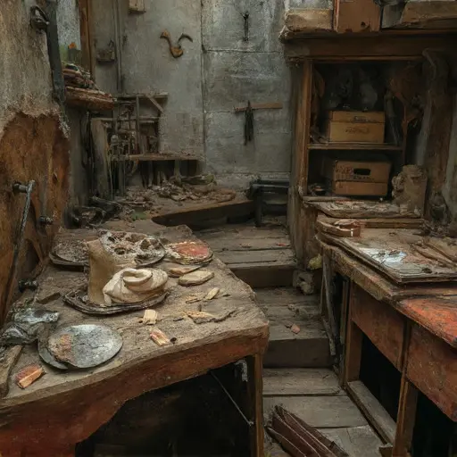 The Tailor’s Attic hums with silent precision. On a worktable, penciled bodice measurements trail off abruptly. Every pin, needle, and tape measure embodies precise labor abruptly paused, the rhythm of garment creation suspended in quiet stillness.