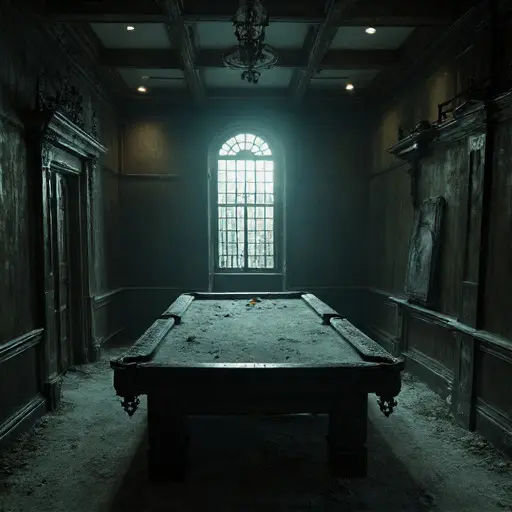 The Billiards Room, designed for evening entertainment and robust social interaction, is now steeped in an eerie stillness, its emptiness more profound than the sum of its decaying parts. Every remaining object stands as a silent witness to a life that ended in self-imposed, irreversible isolation and the silent toll of a promise broken.