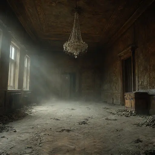 Gilt-Frayne House was a towering, excessively ornate mansion built of white marble and imported, richly detailed wood. Its name suggested a blend of superficial wealth and inevitable decay. The house stood on a prominent hill, highly visible yet profoundly isolated. Upon entering the vast reception hall, the air was immediately cold, thin, and carried a potent, almost chemical scent of old wax, dry plaster, and a faint, sweet trace of crystallized sugar. The floors were covered in a brittle, undisturbed layer of dust, silencing every footstep. The silence here was perfect and brittle, the unnerving stillness that follows a violent, instantaneous collapse of activity. This abandoned Victorian house was a temple to artifice, where a desperate attempt was made to freeze a moment of manufactured joy.