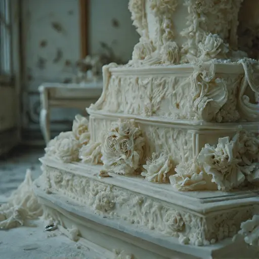 The final, most chilling discovery was in the grand ballroom. In the center of the room, on a circular, marble pedestal, stood a massive, towering wedding cake. It was not a real cake, but a life-sized, incredibly intricate sculpture made entirely of white, crystallized sugar. The sugar has solidified over decades, making it brittle yet unmoving. Tucked into the base of the sculpture was a final, sealed glass bottle containing her last note. It revealed the tragic climax: Her husband, Alistair, had left her shortly after their wedding, unable to live under the rigid control of her perfect, joyless household. Lady Elara, unable to accept the emotional reality, crystallized her entire wedding scene, believing that by preserving the appearance of the joy, she made the betrayal irrelevant. The final note read: “The sculpture is perfect. The moment is now eternal. I am finished with time.” The static bloom of Gilt-Frayne House is the visible, brittle proof of her self-imposed, sweet, and terrifying prison, where the ultimate joy was preserved as the ultimate, inedible artifact within the abandoned Victorian house.