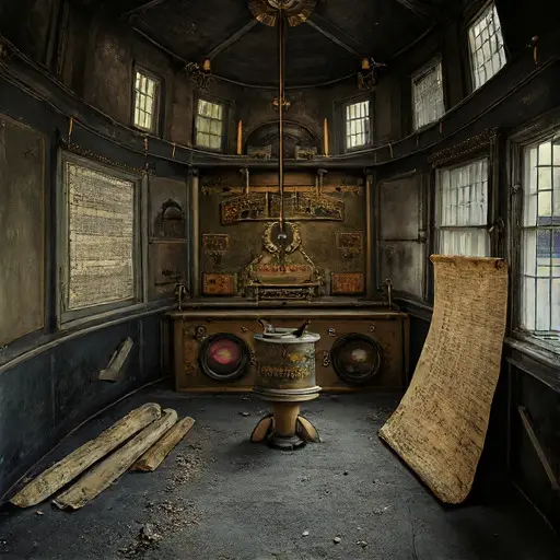 Vesper-Vane Keep was an architectural anomaly: a sprawling, low-slung mansion built of dull gray fieldstone, characterized by numerous small, external structures topped with weather vanes, measuring cups, and antennae. Its name suggested the combination of evening twilight and a directional indicator. The house was situated on a low, exposed promontory, constantly subject to the capricious nature of the weather. Upon entering the main observation deck, the air was immediately cold, thin, and carried a potent, mineral scent of damp rock, ozone, and a metallic tang. The floors were rough, slate flagstones, amplifying every faint sound into an unsettling echo. The silence here was not restful; it was the intense, waiting quiet that precedes a storm, a stillness that seemed to absorb all external motion. This abandoned Victorian house was a giant, sealed instrument, designed to measure and predict the very chaos of the atmosphere.