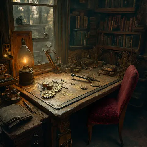 Elias Wren Thornharrowe, a meticulous horologist known for crafting delicate pocket watch movements and calendar mechanisms, lived here with his widowed sister, Faranne, and her daughter, Alin. Elias was patient, exacting, and quietly passionate. His notebooks were filled with miniaturized diagrams—gear ratios penciled with narrow lines, escapement sketches shaded with gentle care, and calibration notes written in a hand as controlled as his craft.