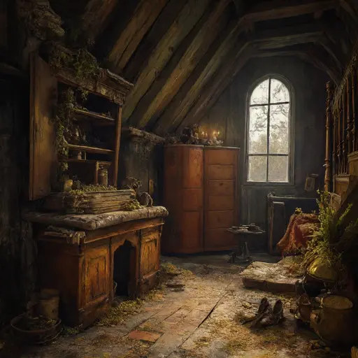 In the Clockmaker’s Study, rows of tiny tools remain carefully arranged: hardened steel gravers wrapped in cloth, jewel settings stored in velvet trays, and unfinished brass plates lined up according to size. Faranne kept the home balanced—linens pressed neatly, herbal draughts labeled with tidy handwriting, and laundry folded with ritual steadiness. Alin’s presence endures through scattered scraps: a wooden toy watch carved by Elias, a chalkboard covered in fading numbers, and a folded paper wheel she begged him to “make tick someday.”