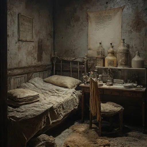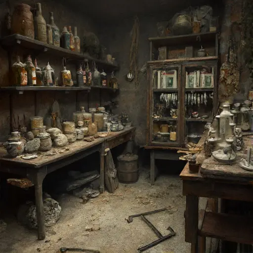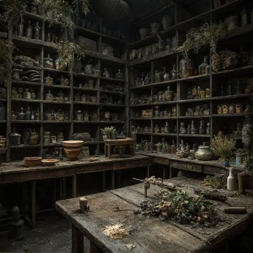 The house remains abandoned, its jars, powders, and codex a quiet testament to interrupted apothecary practice and unresolved devotion.