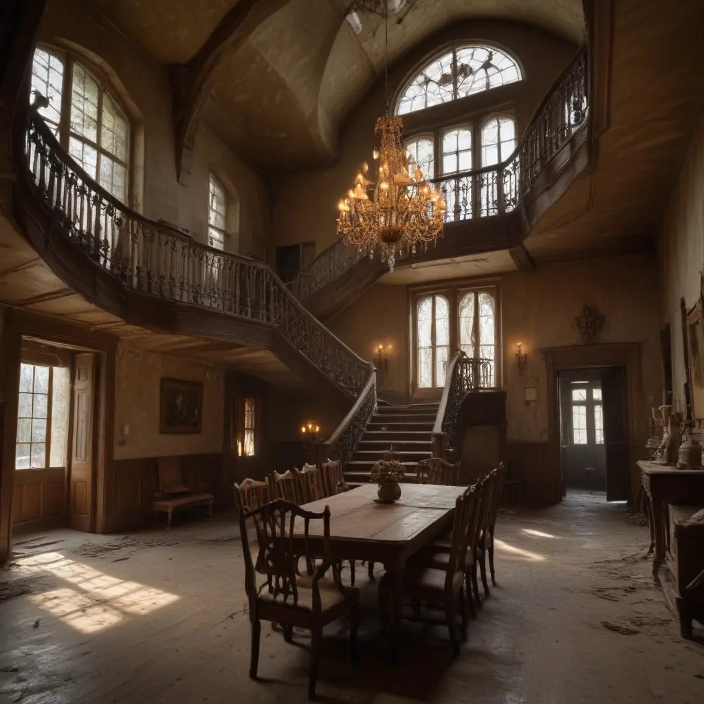 The Grand Hall of Ebonwood feels suspended in time. The faded murals, once depicting noble gatherings, now resemble ghostly figures lost in fog. Dust carpets every surface, muting sound and movement. It’s said that if you stand in silence long enough, you can hear the faint clink of glasses and laughter from a century ago—a trick of the wind or a memory the walls won’t let go.
