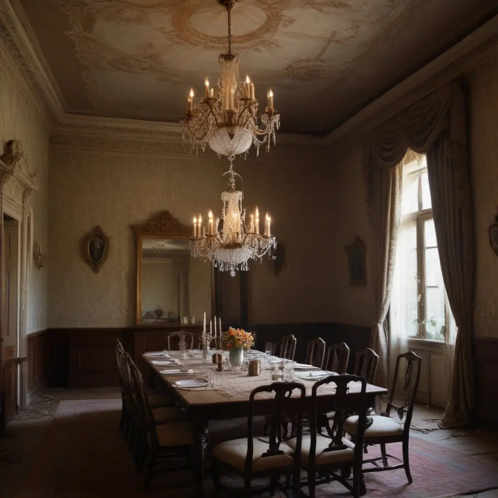 (Alt text: interior of abandoned mansion with decaying furniture and haunting atmosphere)