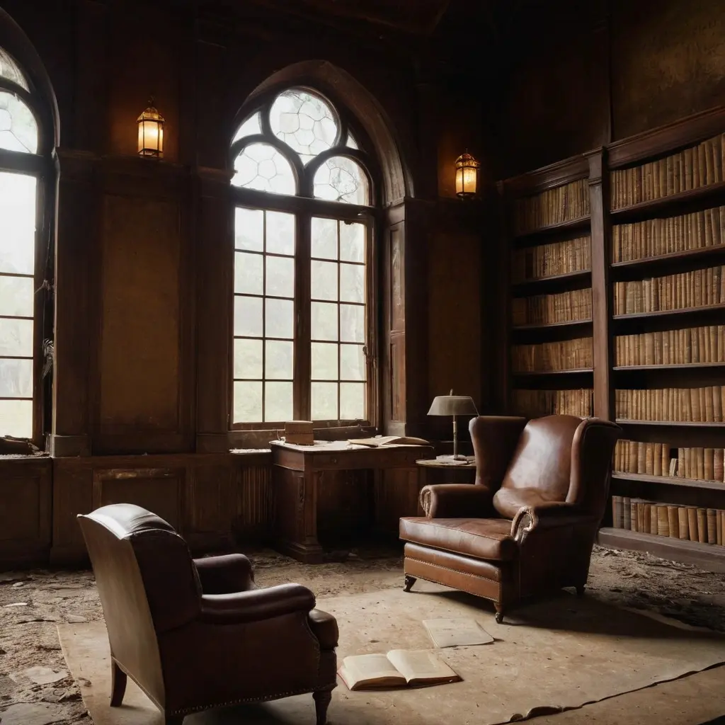 The library of The Whispering Vale might be the most mesmerizing room of all. Rows upon rows of ancient books lean precariously, their pages brittle but still whispering stories to the daring few who open them. A massive fireplace dominates one wall, its mantel carved with strange symbols whose meanings are lost to time.
