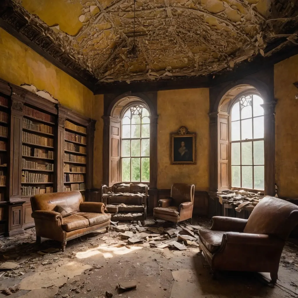 Tucked away behind a heavy oak door lies the library, perhaps the most mesmerizing room in the entire haunted mansion. Rows upon rows of forgotten books still cling to the walls, their spines whispering names long erased by time. The air is thick with the scent of leather, dust, and secrets.