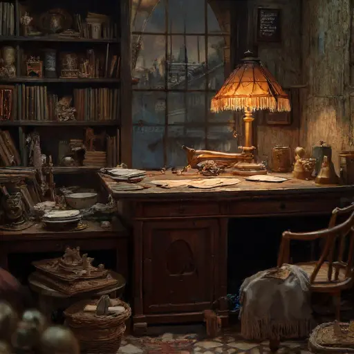 Lunetta Carys Eirenwall, a tutor of household handwriting and modest bookkeeping, once ordered her days around these rooms. She lived with her brother Aven, a workshop assistant whose income frayed with each unreliable season. Lunetta kept the tally chamber in quiet precision—slates arranged by level, pencils trimmed evenly, blotters carefully rotated so no ink ring overlapped another. She paced the same soft arc from escritoire to hearth before beginning each lesson, murmuring sums beneath her breath to steady her nerves. As Aven’s work faltered and her own wrists stiffened, their supplies dwindled. Lessons thinned. Account sheets piled dusty at the edges. Ink thickened in its bottle. Day by day, Lunetta’s practiced order slackened until the room reflected the fatigue she never voiced aloud.