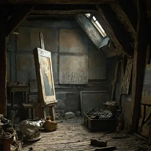 In this attic studio, Elias painted until exhaustion blurred his vision. His final works depicted Thornwyke Lantern House glowing with an uncanny inner warmth, windows shining as though someone moved within. When he vanished abruptly, only his brushes remained—meticulously arranged on the sill, waiting for a dawn that never came.