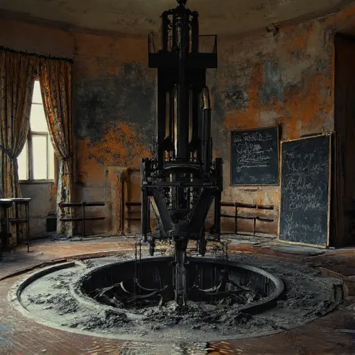 Dr. Hallow’s final, desperate phase centered on the “Borehole Chamber”—a once-elegant sitting room where he had a specialized drilling rig installed, punching a shaft straight down through the foundations of the house. His journals, found water-damaged and brittle near the base of the rig, charted his increasing geological mania. He no longer cared about surface samples; he was determined to reach the Earth’s core. “The final layer yields no light, no warmth, only a profound, crystalline truth. I must join the foundations,” read his final legible entry, the handwriting fractured by dust and exhaustion.
