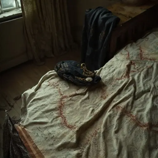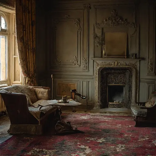 A muted stillness pervades Demir House, deepest in the abandoned drawing room, where domestic elegance once mingled with the delicate work of Selim Arslan Demir, a diplomat whose negotiations often unfolded over coffee rather than council halls. Now the lifting parchment corner marks a faint confusion in the room’s hush, as if recalling a decision he never finished forming.