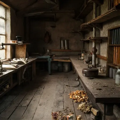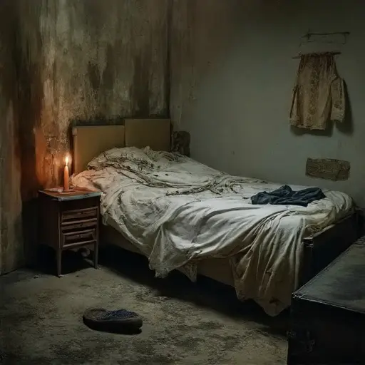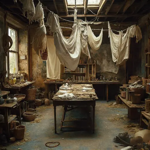 Muted quiet gathers inside Santoro House, heaviest in the abandoned linen loft, where Marco Eugenio Santoro, a Neapolitan perfumer who crafted blends at home to supplement uncertain wages, once mixed essences among domestic clutter. Now the drying lines sag over his halted routines, and the curling parchment glints with a question he never answered.
