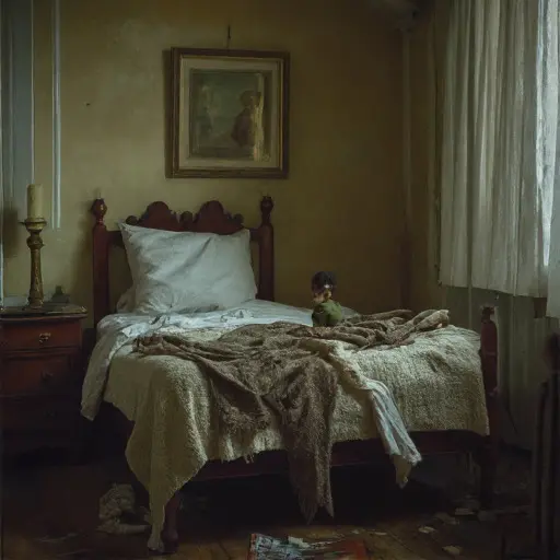 Neighbors murmured that Leif misinterpreted a local family’s ancestral verse, altering a phrase that referenced a marriage bond; the error ignited a quiet dispute he could not mend. In the narrow hallway, a sheaf of notes lies crumpled near a tipped pail, water long evaporated. Astrid’s spectacles case sits cracked along the hinge. A Danish–Icelandic lexicon has fallen open on the floor, exposing pages wrinkled by moisture. A bit of charcoal used for phonetic marks leaves smears across the wainscoting. Each trace leans toward distress yet never states precisely how the rupture began.