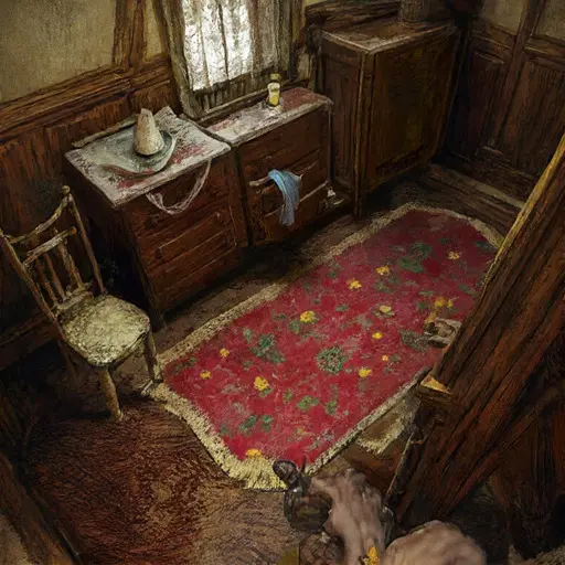 Along the east interior hallway, Alenwyss’s boots lean against the wainscot, leather stiffened by long disuse. Therren’s abandoned clasp-engraving blanks scatter in a crescent near the baseboard, corners dulled by moisture. A cracked lamp chimney rests beside a dust cloth she dropped and never reclaimed.