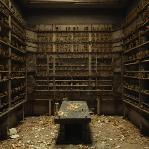 The house preserves his systematic anxiety structurally. Many internal passages are fitted with small, precisely calibrated acoustic dampeners and absolute darkness screens built into the walls, now all rusted and frozen, remnants of his attempts to create a universal, absolutely fixed and non-interfering environment for abstract political contemplation.