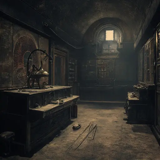 The ultimate chilling clue is the small hole in the black rubber. It is the final audition—the Zero Note achieved, representing the cessation of all auditory existence and the perfect, objective truth found in a single, un-dimensioned point of pure, absolute nothingness. The broken ear trumpet and blank rubber ensure no further attempt could be made to chart the flawed, vibrating world. This abandoned Victorian House, with its silent chambers and broken tools, stands as a cold, imposing testament to the master musician who pursued the ultimate, pure form of sound, and who, in the end, may have successfully defined the Perfect Non-Vibration, vanishing into the un-heard, objective finality that he engineered as his final, terrifying statement of pure existence.