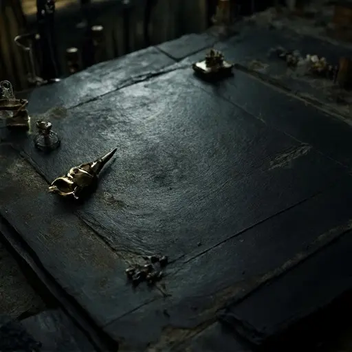 Poet Master Carmen Vacuum was last heard working in his study, followed by a sudden, intense sound of heavy metal grinding and snapping (from the printing press and the calligrapher’s wheel) and then immediate, profound silence. He did not leave the manor. The next morning, the study was cold, the Metrical Chamber sealed, and the man was gone. No body was found, and the only evidence was the singular, physical alteration to his final philosophical work.