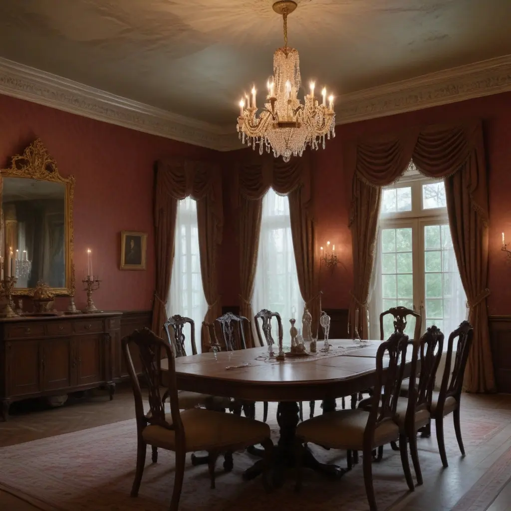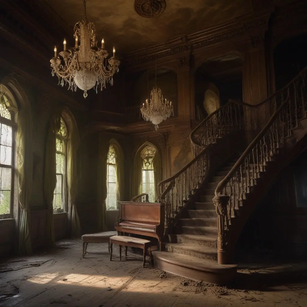 Moving deeper, each room tells its own tragic story. The grand dining hall still holds echoes of extravagant dinners. Chandeliers hang in defiance of gravity, while faded portraits of forgotten ancestors watch in eternal stillness. The air carries a musty perfume of decay and nostalgia—a scent of memories long past.