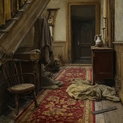 She trimmed quills to matching lengths, rotated blotters to give clean corners, folded linens with exacting care. But as Halven’s pay thinned and winter stiffened her hands, her rhythms slackened. Lesson slips remained unreviewed, fabric piled unstitched, and thread baskets sank into disorder. Mounting debts forced their departure—leaving each room caught mid-task, mid-thought, mid-breath.
